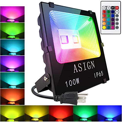 100W RGB LED Flood Lights, Indoor Outdoor Decoration Light Waterproof Color Changing LED Security Light with Remote…
