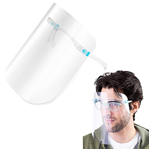 5 Pack Face Safety Guard Shield with Reusable Glasses Frame Ultra Clear Protective Full Face Coverage Visor Detachable…