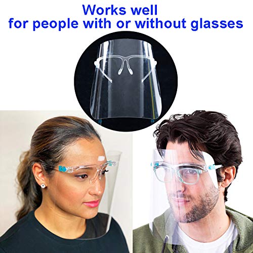# Upgraded Face Shields with Glasses Frames: Made by premium liquid silicone rubber and plastic,which are sanitary,flexible,durable,light weight,and comfortable to wear.Each face shield contains an internally mounted glasses frame.Wearing the face shield just like is having eyeglasses on your nose.