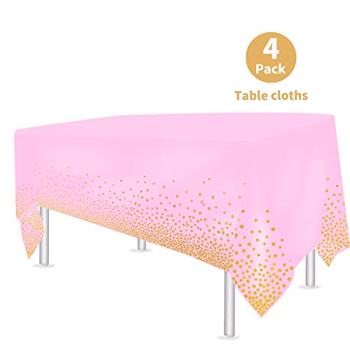 54″ x 108″ 4 Pack Disposable Party Tablecloth for Rectangle Table Gold Stamping Dot Confetti Rectangular Plastic Table Cover for Baby Shower Party Birthday Engagement Wedding (Pink of 4 Pack)