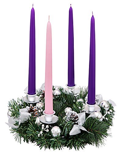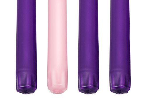 Nothing says advent more than this beautiful set of 10″ taper candles. This is truly a beautiful set of 4 Advent Candles, Made of Wax, the candles stand at 10 inch height and 7/8 base . 3 purple and 1 Pink. The quality of these candles are top of the market, these are USA made Candles!! And their quality is unlike any other candles on the market. These are premium hand dipped candles, each candle was induvial dipped by a human and not by a machine. The Candles are each individually wrapped and protected by a beautiful Christmas themed box, which makes it the perfect set of candles to gift someone with. We are sure once you’ll try these candles once you will continue buying it every year like our many other satisfied customers.