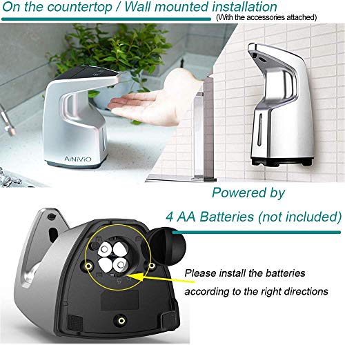 【IPX6waterproof & Battery Operated】 Advanced IPX6 waterproof material prevents the battery compartment from corrosion. Note: Please close the battery cover thoroughly.The automatic soap dispenser is powered by 4 AA batteries(not included).