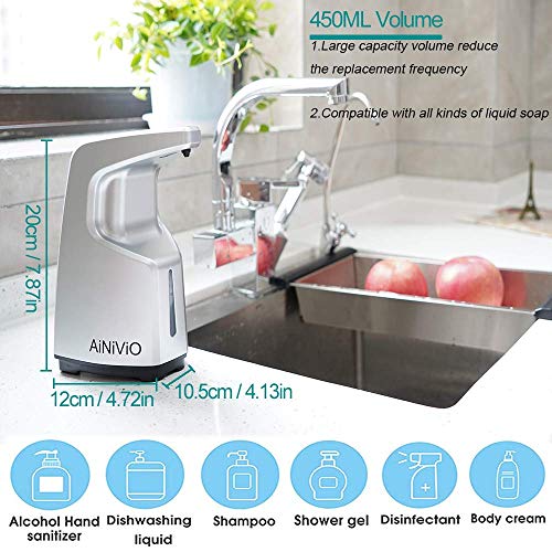 AiNiViO Touchless Soap Dispenser, 15.2 oz /450ml Automatic Hand Sanitizer Dispenser Battery Operated, Countertop/Wall…