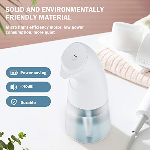 【Observable Capacity Soap Dispenser & Waterproof/Leakproof/ Stabibility】 Made of ABS+PET waterproof material, Large-capacity 450ml(5.21oz), IPX3 waterproof. It has an anti-leakage silicone ring attached to the water tank, and a waterproof silicone sealed to the battery to prevent water from damaging the circuit boards. The bottom is designed with anti-slip silicone to keep the dispenser standing still on a wet surface.