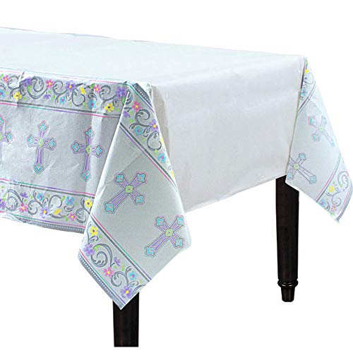amscan Amscan579420Communion White Table Cover | Party Tableware, 54″ x 102″