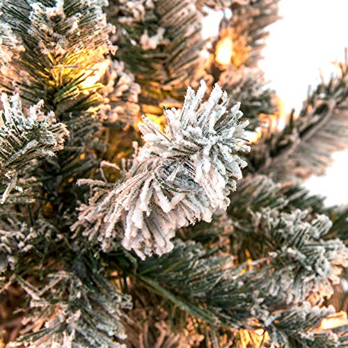 REALISTIC AND FESTIVE: The natural appearance of this pencil Christmas tree with flocked branches add a winter feel to any setting; Number of Tips (4.5ft/6ft/7.5ft): 300 / 502 / 641