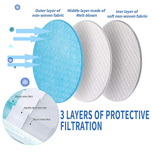 ULTRA SOFT AND COMFORTABLE: – 3 layers of protection: non-woven filter ply + fiber ply + soft cotton. They are soft and comfortable ear hook masks, not easy to drop, no need to adjust it when you work.