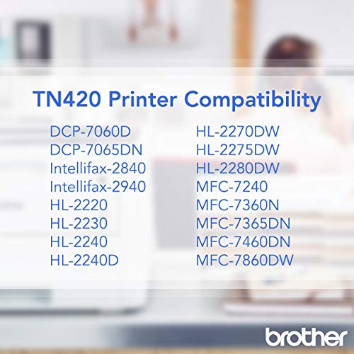 The use of Brother Genuine replacement toner cartridges like the TN-420 produces sharp, black and white pages with the quality you expect from Brother products. The Brother TN-420 replacement laser black toner cartridge is for use with 16 Brother products. This professional cartridge is intelligently engineered to work in seamless unison without compromising the quality of the print.
