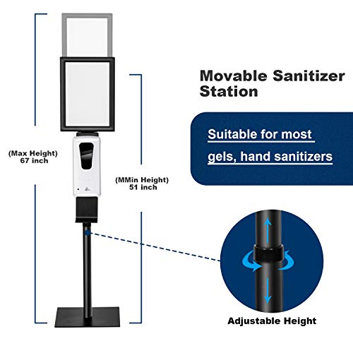 【Adjustable Height】: Our adjustable soap dispenser freestanding telescopic lifting stand with black snap frame and black adjustable pole. Adjustable height from 31.5 to 55.1 inches, easy be adjusted to the appropriate height. The weight-type disc base is stable and easy to move.