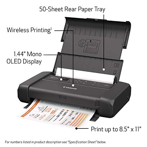 The Pixma TR150 is a small & sleek portable printer for at home in the office and on the go built for professionals – the Pixma TR150 Wireless Portable Printer is lightweight and compact – made to fit in bags and backpacks and lets you print without an AC outlet thanks to the optional LK-72 Battery Pack Print high-quality documents flyers one-sheets sales materials and even borderless photos with fast print speeds and easily print wirelessly directly from tablets smartphones computers and the cloud2 save up to five custom templates to have on hand whenever you need them and print these files directly from the printer’s display plus with an intuitive interface that features a 1.44-inch OLED display the Pixma TR150 makes it easy to print anytime anywhere.