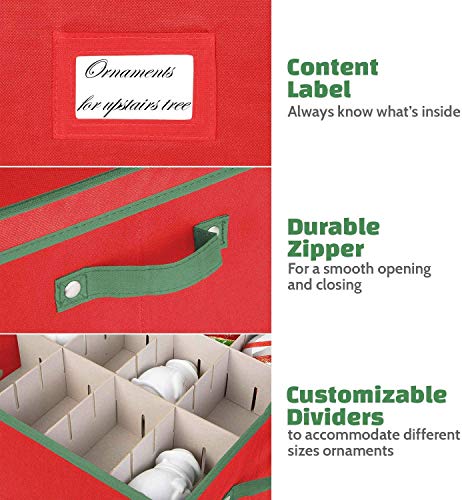 🎄64 INDIVIDUAL COMPARTMENTS – With our organizer’s premium design, you can store up to 64 individual Christmas ornaments and small lights with ease. Each compartment is about 3” in height and can easily store the standard sized Christmas tree ornaments.