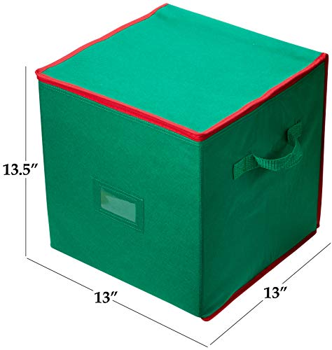 PRODUCT DIMENSIONS: The Christmas Ornament Storage box measures 13 inches wide X 13 inches deep X 13.5 inches high.