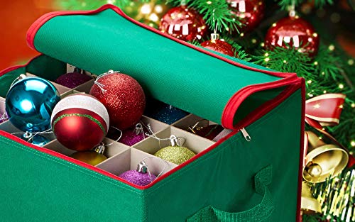 Christmas Ornament Storage – Stores up to 64 Holiday Ornaments, Adjustable Dividers, Zippered Closure with Two Handles…