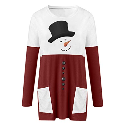 Christmas Tunics for Women to Wear with Leggings Cute Snowman Printed Crewneck Long Sleeve Fall Tops with Pockets