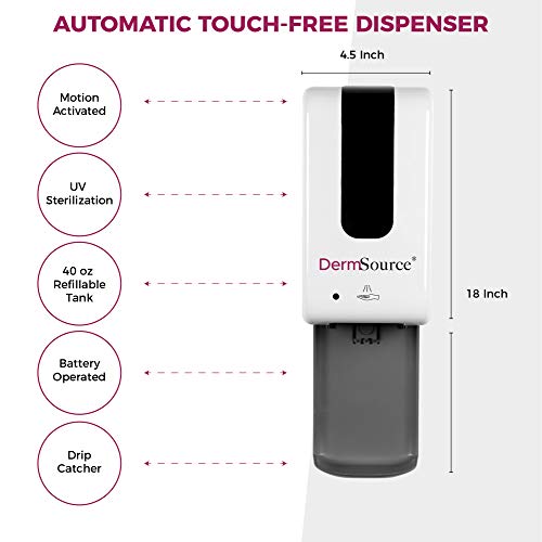 DermSource Touchless Hand Sanitizer Dispenser | Wall Mount Sanitizing Station with Drip Catcher, and Refillable Bottle…