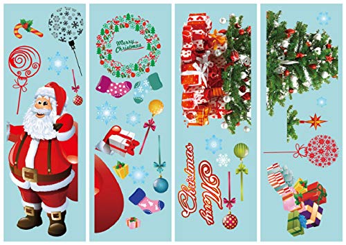 · Where to use it?- This Christmas Tree Gifts Wreath Santa Claus stickers decals great for home windows, shopwindow, showcase, store windows, glass storm doors, mirrors or any other smooth surface. We do not recommend using them in car windows as the heat may cause them to shrunk or peel.
