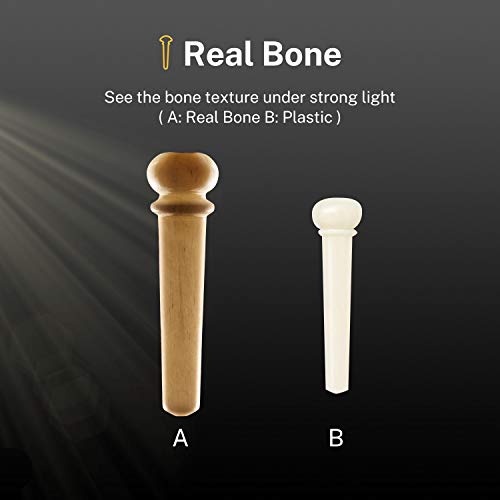 Real Bone-Donner acoustic guitar bridge pins is made of real cattle bone which is high quality.You can see a trace of cattle bone fiber under strong light. Widely applicable -Standard size, card slot about 5.0mm design. Donner guitar pins is applicable to most brands of guitars. Please check the dimensions before purchasing to avoid special circumstances.If it is too large, sand it with sandpaper to get the right size.