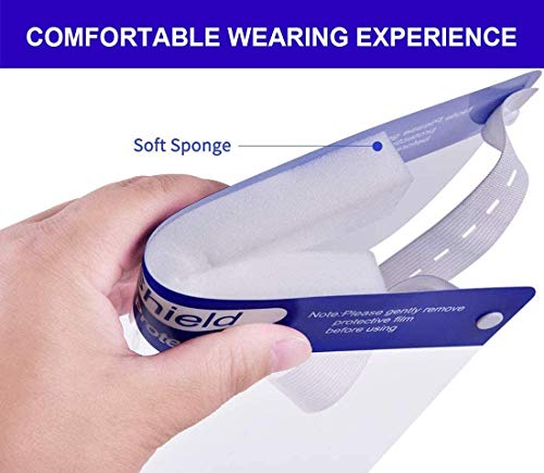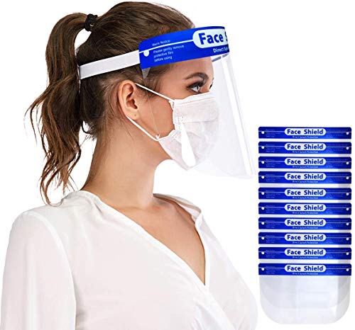 Dust Guard 10-Pack Safety Face Shield, Ultra Wide Transparent Visor w/Elastic Head Band, Mouth Nose Eyes Visor…