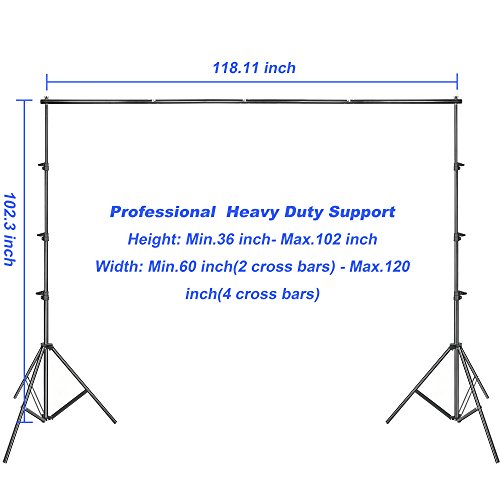 8.5ft x 10ft Background Support System + 6ft x 10ft Muslin Backdrop + Backdrop Clamps: Quick and easy set up a backdrop kit, very suitable for heavy duty work, use with the clamps, can be prevented background slippage, muslin backdrops are ideal for television, video production and digital photography