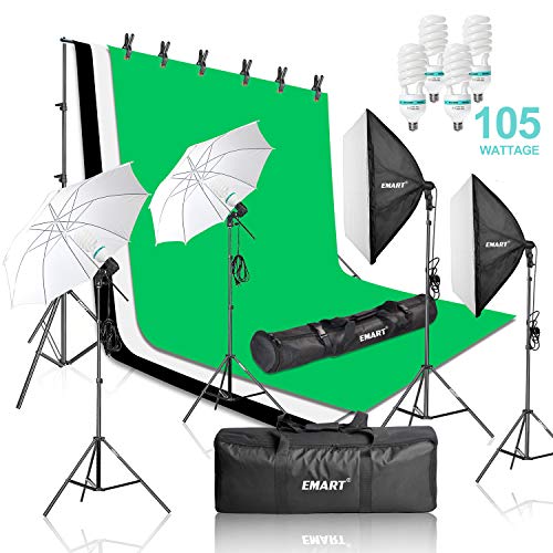 EMART 2000W Photography Video Studio Lighting Kit, Softbox Umbrella Continuous Photo Lighting, 8.5 x 10 Feet Backdrop…