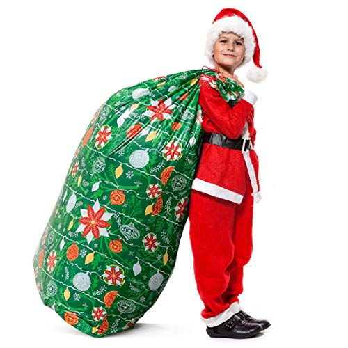 56”x36” extra large Christmas gift bag for big, giant, oversized, huge and jumbo Xmas gifts. Christmas bags for all friends, family, & kids (boys & girls). Make wrapping presents super easy with no mess.