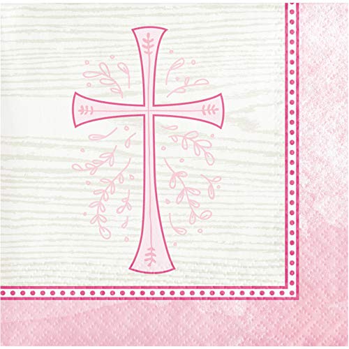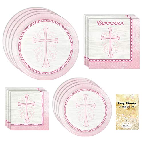 First Holy Communion Party Supplies, Divinity Pink, 16 Guests, 65 Pieces, Disposable Paper Dinnerware, Plate and Napkin…