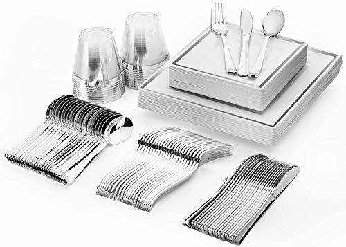 CONVENIENT USE-You can have a great time at your party without worry about washing the dishes. When the party is over, just gather the square plates and silver cups dispose of them.