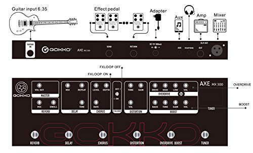 GOKKO Audio MX300 Guitar Multi Effect Pedal, 6 Types Effects: Reverb, Delay, Chorus, Distortion, Overdrive, Boost, w/FX…