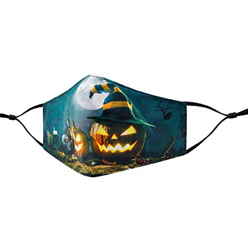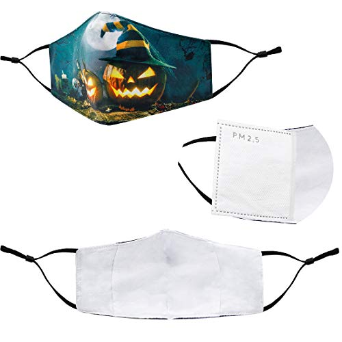 Halloween 3 Pack Reusable and Breathable Pumpkin Pattern Cotton Mouth Cover, Adjustable Face Bandanas with 8 Pcs…
