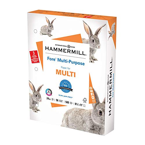 Hammermill Printer Paper, Fore Multipurpose 24 lb Copy Paper, 3 hole – 1 Ream (500 Sheets) – 96 Bright, Made in the USA…