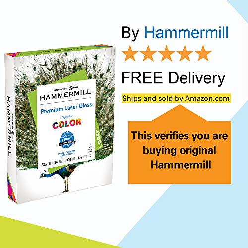 The Hammermill Paper 99.99% Jam-Free Guarantee: You will not experience more than one jam in 10,000 sheets using Hammermill copy paper on your high-speed digital printer or we will replace your Hammermill paper purchase. We test more than 13.5 million sheets of paper every year to make sure that each sheet is consistent. Then we test our papers on all kinds of printer and copier equipment to ensure that our paper will work well for you, every time, on every machine. MAKE SURE IT’S ORIGINAL HAMMERMILL QUALITY: look for “Ships from and sold by Amazon” at the top of the page, under the product title. “It’s More Than Just Paper” to us and to millions of sustainable forestry workers across America, including American family tree farmers. Hammermill papers are made with renewable resources from certified sustainably managed forests. We want our business to last for generations and that means taking good care of our environment. This Hammermill laser gloss color copy paper is a premium paper designed for color-intensive print and copy use on all color laser copiers and printers. This gloss coated sheet allows you to create slick, high quality documents that look like professionally-printed pieces. This coated product is not suitable for inkjet printers. It is available in 32lb 8.5 x 11 letter size paper. Hammermill Premium Laser Gloss Paper is available in a single pack (300 sheets of paper), and in an 8 pack case (2,400 sheets of paper). Choose from items listed at top of page in SIZE and STYLE NAME.