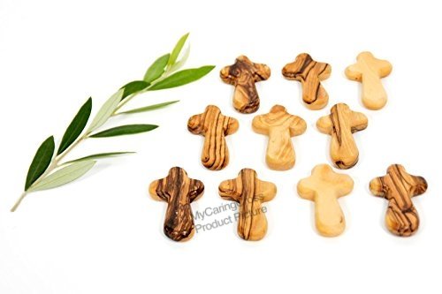 Holy Land Imports 10 Olive Wood Holding Crosses Comes with Velvet Bag & Certificate