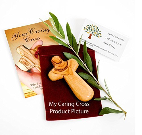 These beautiful olive wood Palm Crosses are a must for all Christians. They are made from genuine Olive Wood in Bethlehem, the Holy Land by a Christian family business. Olive wood is like wine. It will develop its own patina with time and usage. It makes a perfect companion for prayers or strength. The Palm Cross comes in a velvet sachet for storage. Each Cross comes with a certificate of Origin. Cross is about 4″ in height.