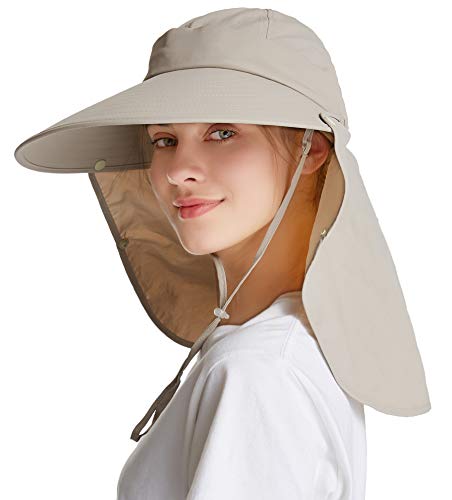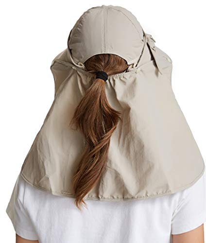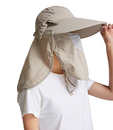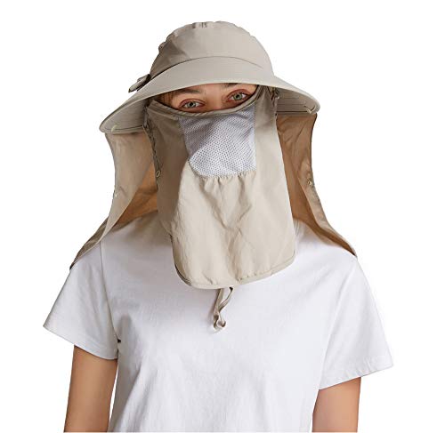 icolor Women Sun Cap Finshing Hats UPF+50 Detachable Face Mask Neck Flap Visor Wide Brim Sun Protection Hiking Hats