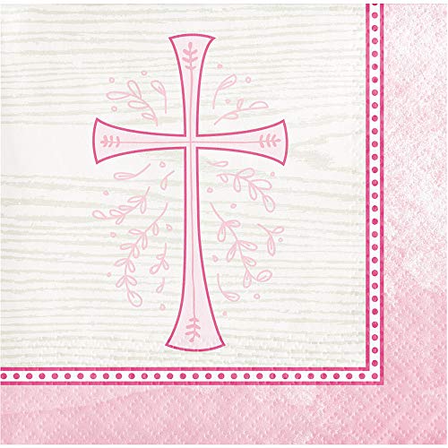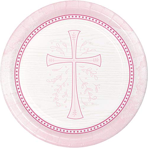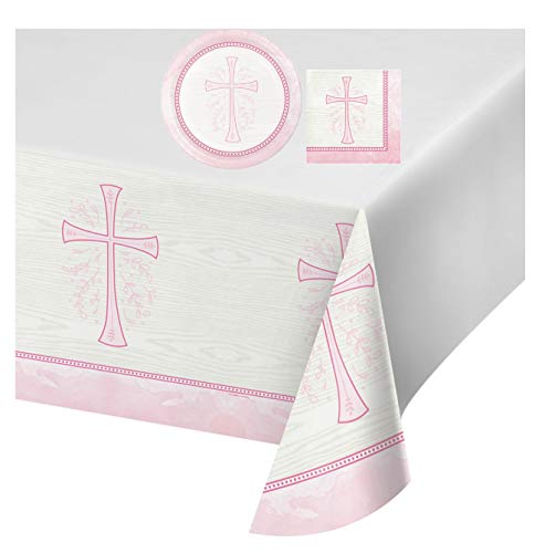 Divinity Cross Celebration Party Supply Pack! Bundle Includes Paper Plates & Napkins for 8 guests: (8) 6 7/8 inch Dessert Plates, (16) Beverage Napkins, and (1) 54 inch x 102 inch Plastic Table Cover. Items feature a Divinty Cross and Pastel Border. The Perfect Party Pack for your Baptism, Christening, First Communion, or Confirmation Celebration! Great for Vacation Bible School or Christian Fellowship too!