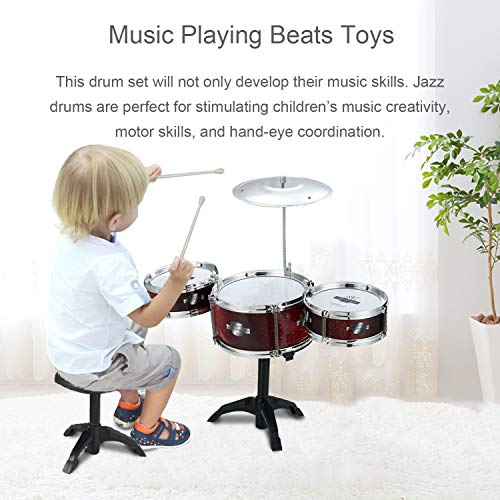 JAFATOY Small Plastic Drum Set Toy for Kids Age 3 – 6 Years Old Toy Musical Instruments Playing Rhythm Beat Toy Great…