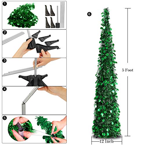 Joy-Leo 5ft Green Sparkly Pop Up Sequin Christmas Tree – Reflective Colors Tinsel, Save Your Space and Time (Set Up in 5…