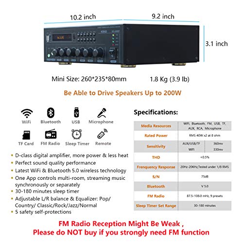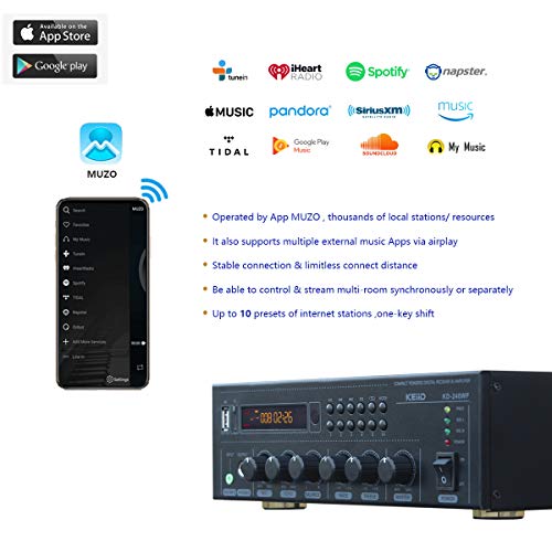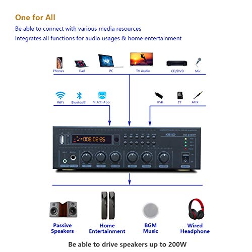 KEiiD WiFi & Bluetooth 5.0 Stereo Digital Amplifier Receiver for Home Audio BGM Music System, MUZO App Control Multi…