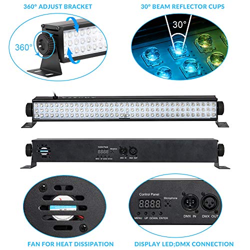 Multi-mode& Multifunction. LaluceNatz wash lights bar support multiple modes option: Static Color / Auto Program / Sound Activated / Master-Slave / DMX. You also can set Wall running water effect, great for stage or wall washing. Perfect for mobile dj gigs, Christmas party, bar, club and etc.