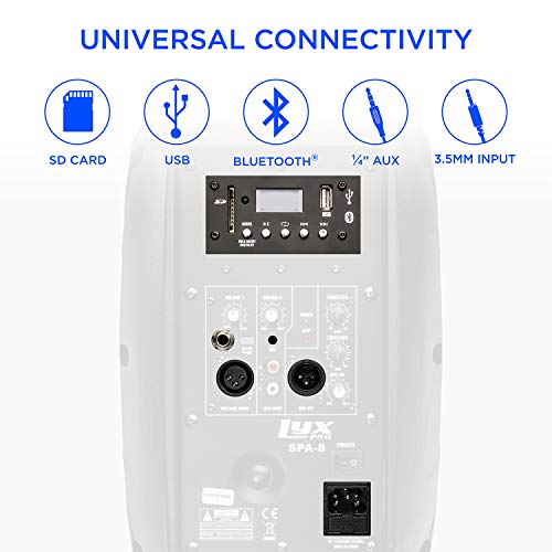 LyxPro SPA-10 10″ Inch Portable Professional PA Speaker Powered Active Compact Lightweight Loud Amplifier System with Equalizer, Built-in Bluetooth, SD Card Slot, USB, MP3, XLR, 1/4″,3.5mm Input