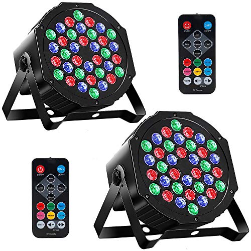 MOSFiATA Par Lights 2 Pack, RGB 36 LED Stage Lights Sound Activated DMX Control, 7 Modes Uplighting Lights with Remote…