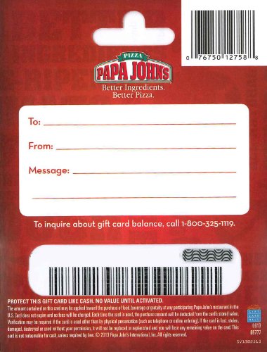 Papa John’s Gift Cards are redeemable in the U.S., including AK and HI, only.
