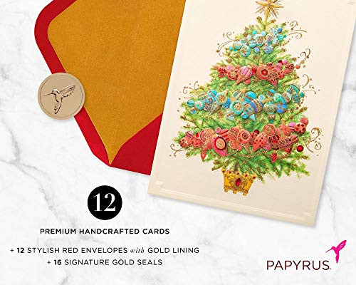 Papyrus Christmas Cards Boxed with Envelopes, May Peace and Happiness Be Yours, Christmas Tree (12-Count)