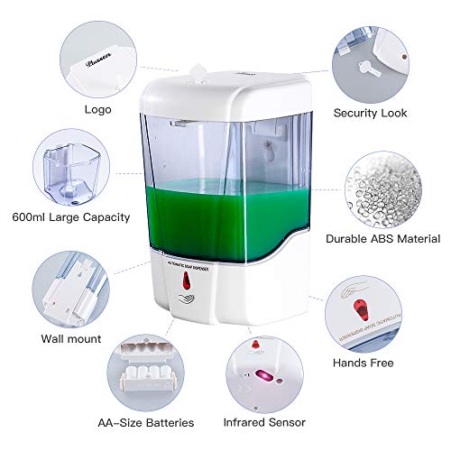 600ml Capacity & Energy Efficient – This liquid soap dispenser has 20oz large capacity to reduce maintenance. Single out the liquid 0.8~1ml per activation to reduce waste. When it is getting close to needing a refill, you’ll quickly see thanks to the transparent soap chamber. Locking design, equipped with a key, safety and suitable for commercial public places, such as schools, hotel, hospitals, airports, restaurants, kitchen, office, etc.