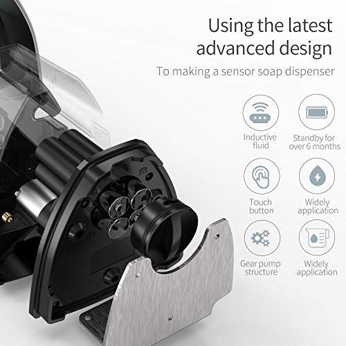 🎀🎀🎀【Core Invention Technology and Long lifetime】: 🎀The automatic soap dispenser built in high quality gear pump structure and use this core invention thechnology, so we have promise a long lifetime, and we offer 2 year warranty time than other automatic soap dispenser in market.🎀High efficiency motor making the liquid fluid more smooth. 🎀Soap nozzle can closed quickly, when stoping , can prevent more soap leak out in bady or other places, keep it more cleaner.