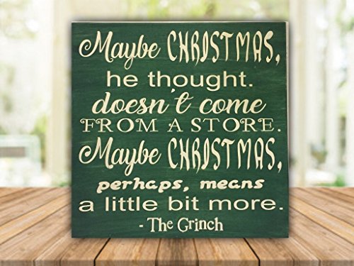 PotteLove Maybe Christmas he Thought, The Grinch 12″x12″ Wood Plank Hanging Sign