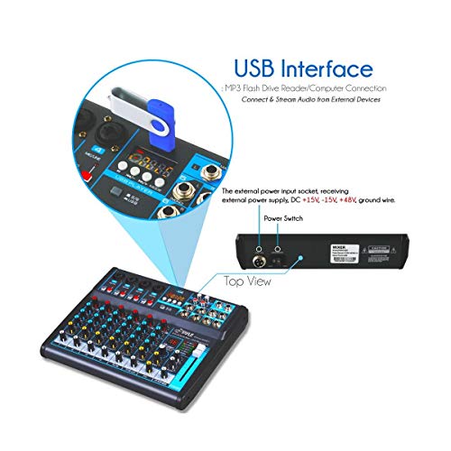 USB/Flash Reader /MP3 Compatibility : Connect your external USB, computer PC, flash drive or Bluetooth device to Mix & record; Use the built in controls to play/pause, skip tracks and switch between modes