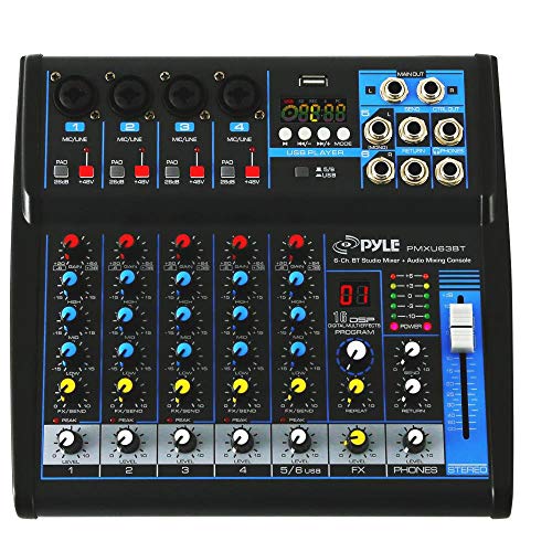 Pyle Professional Audio Mixer Sound Board Console – Desk System Interface with 6 Channel, USB, Bluetooth, Digital MP3…