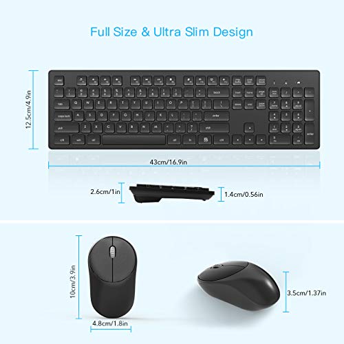 RATEL Wireless Keyboard Mouse Combo, 2.4GHz Slim Full-Sized Silent Wireless Keyboard and Mouse Combo with USB Nano…
