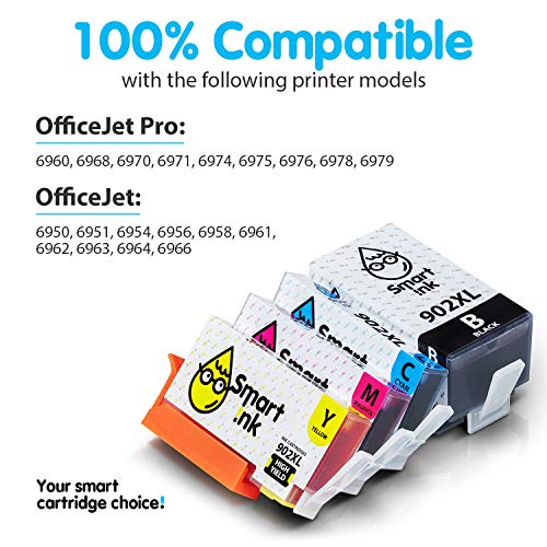 Smart Ink Compatible Ink Cartridge Replacement for HP 902 XL 902XL (4 Combo Pack) to use with Officejet Pro 6978 6968…
